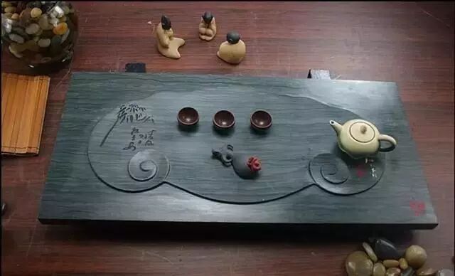 茶盘是用来盛放茶壶、茶杯、茶宠乃至茶食的浅底器皿。其选材广泛,常见的有金属、竹木、陶土等材质,其中又以金属茶盘最为简便耐用,以竹制茶盘最为清雅相宜。此外还有用特殊石材如玉石、端砚石、紫砂制作的茶盘,古朴厚重,别有韵味。