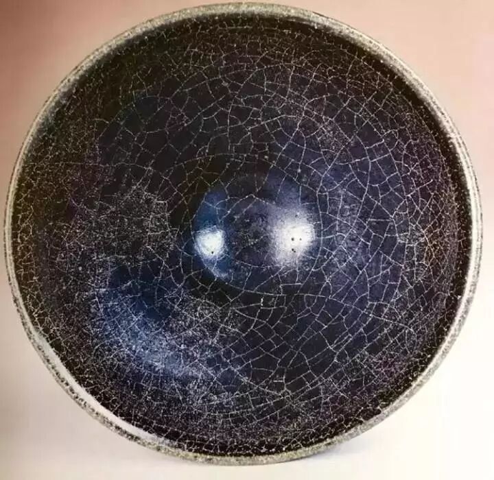 黑釉,即是纯黑釉,表面无斑纹,是建窑较经典的釉色。有的表面乌黑如漆,有的则是黑中泛青,也称为“绀(gàn)黑釉”或“乌金釉”。