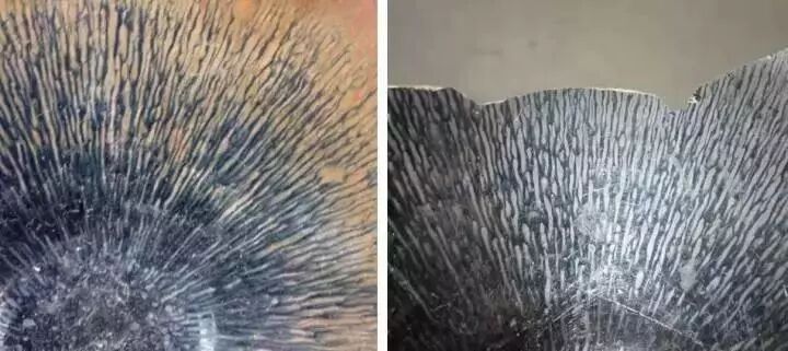 龟裂纹见于多种釉色的建盏,尤其以生烧品最为明显。