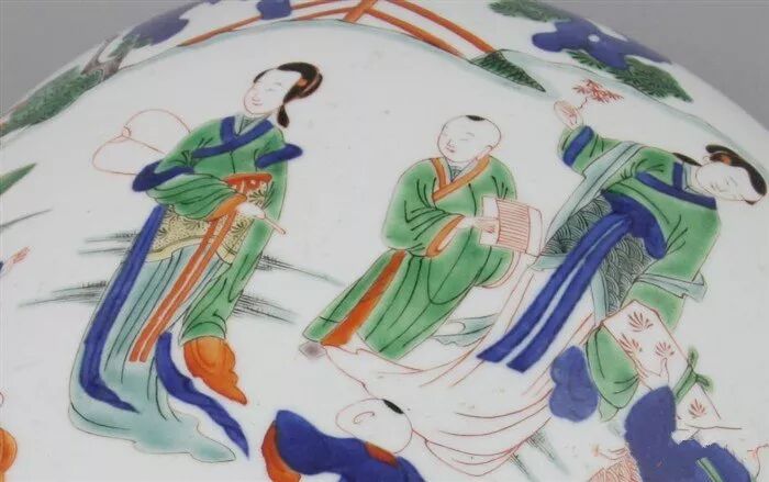 ☑康熙五彩:发明了釉上蓝彩和黑彩,以釉上蓝彩取而代之明代的釉下青花,加之黑彩作装饰,因此比明代的彩色更丰富,而且由于烧成温度较高,比明代更透彻明亮,江湖上尽是关于它的野闻传说。