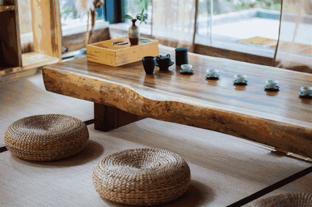 尤其是大堂靠前的位置,是整块完整大木头雕刻打造的一方茶席,这也是老板独具匠心的设计,很多人来到茶馆外,对这样的茶室又喜又忧,而在大堂设置的茶席,很容易让茶客走进心里,走过路过简单喝杯清茶。