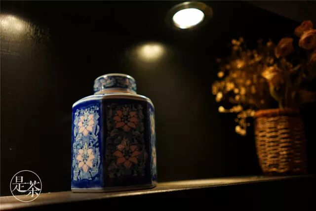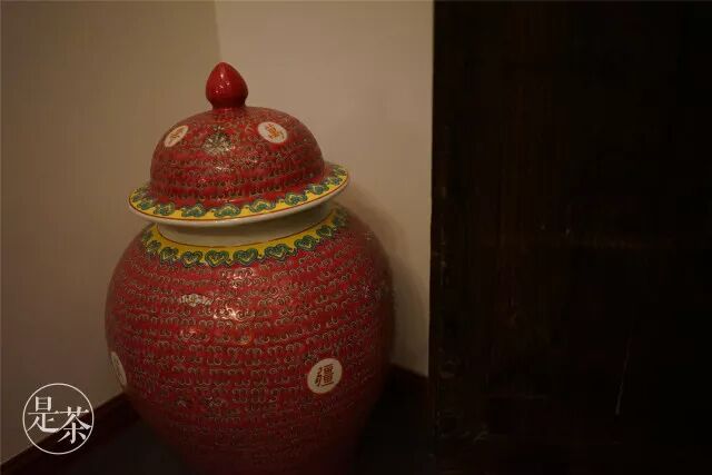 在大堂的几个边边角角,都摆放着几个大茶缸和一些茶柜,里面都储存着不同的茶类,这也算是空间的极尽利用,几个茶缸或青花、或青瓷,从颜色和构图都惊人的和谐。
