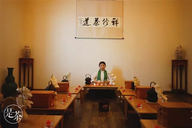 响起的梵音、茶几上整齐的佛经、茶艺师的禅茶,无不体现出禅修茶道的境界。而这巧妙的融合点,便是禅定很难,但辅以泡茶的十二道工序,便能让你的心沉下来、静下来,这就是所谓的“动禅”。