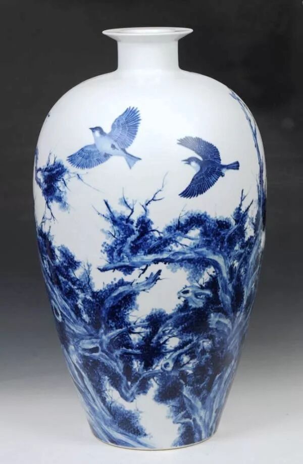 青花瓷是运用天然钴料在白泥上进行绘画装饰,再罩以透明釉,然后在高温下烧成,使色料充分渗透于坯釉之中,呈现青翠欲滴的蓝色花纹。