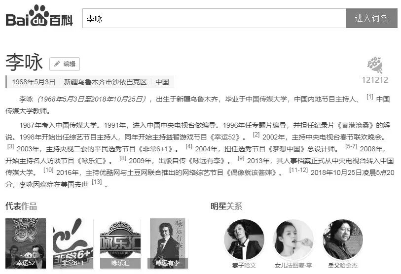 就是这样的一位优秀主持人,李咏,在纪念的黑白色中定格了。我们难过,遗憾,祈祷……李咏老师,一路走好。
