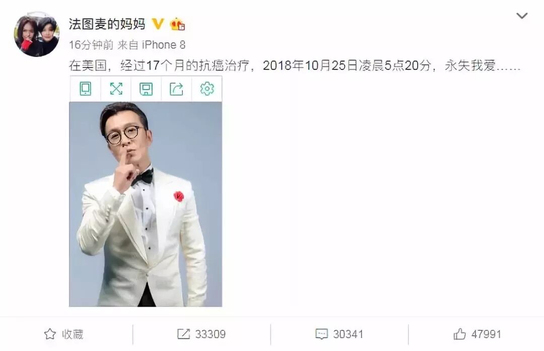 29日上午,哈文在微博发文称丈夫李咏因病去世,她写道“在美国,经过17个月的抗癌治疗,2018年10月25日凌晨5点20分,永失我爱。”