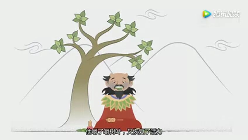 影片开头就为我们介绍了茶叶的传说:某年某月,疲惫的神农已经中毒72次,眼看就要毒发身亡,一片叶子飘进了他的嘴里,使他重新恢复活力。这就是茶叶发现的过程——至少神话里是这么说的。