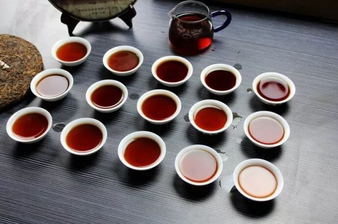 在审评茶汤时,汤色随汤温下降逐渐变深;若在相同的温度和时间内,绿茶色变大于红茶,大叶种大于小叶种,嫩茶大于老茶,新茶大于陈茶。