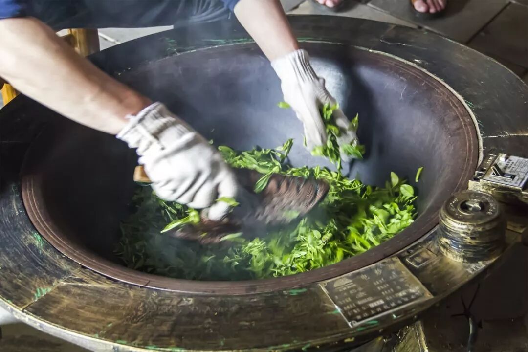 3、嫩片老片分开杀青,生锅热锅连续作业,杀青、失水、造型相结合;