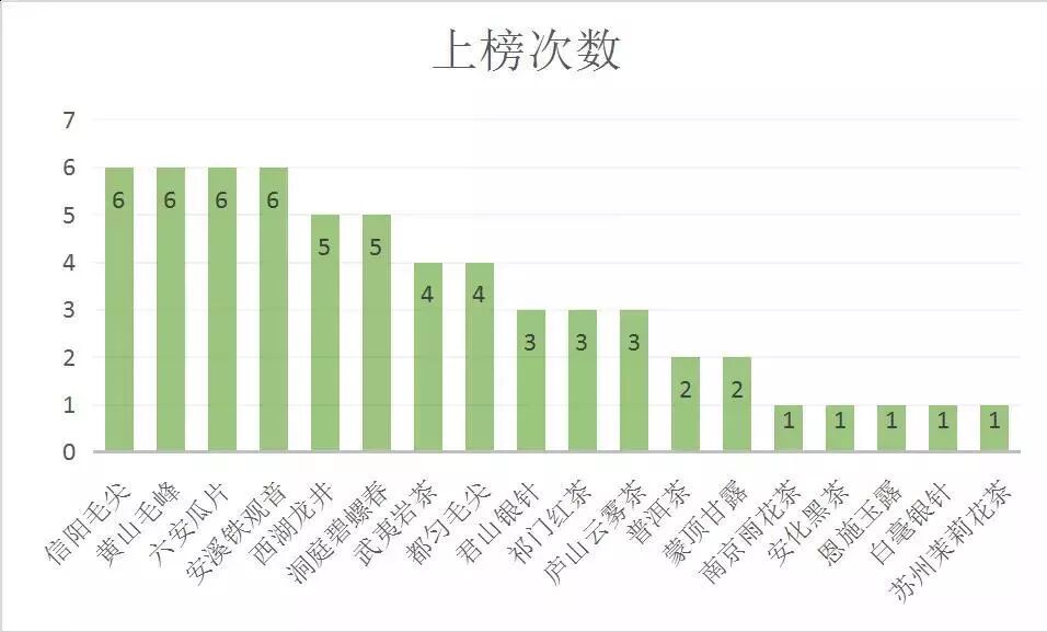 从1915年至2017年,有公信力的十大名茶评选,总共有6次,相比于上榜1次的南京雨花茶、上榜3次的祁门红茶,上榜5次榜单的碧螺春可谓是遥遥领先。