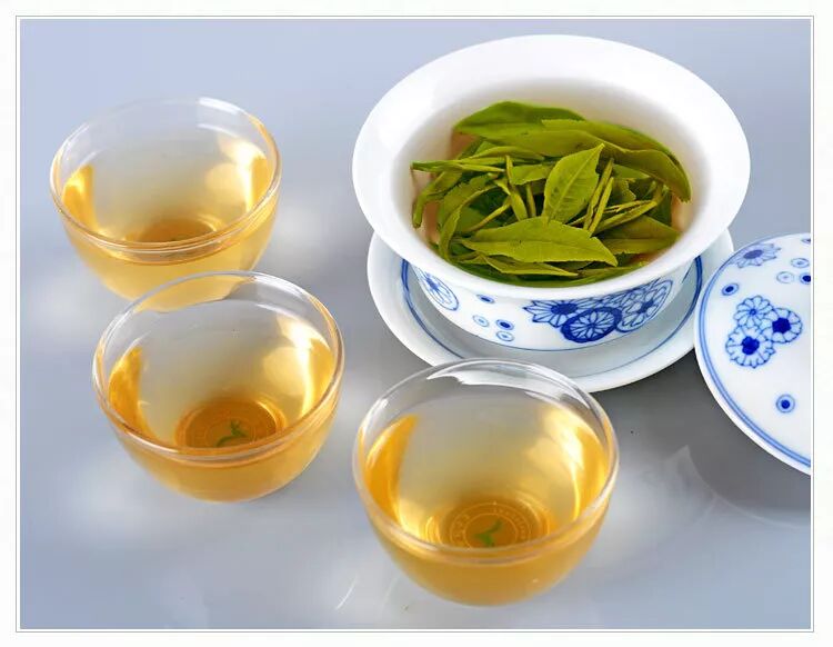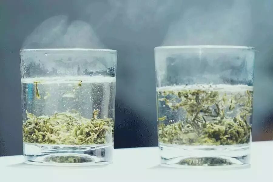 冲泡一杯,经双手揉搓的茶叶如云舒展,呈现一旗一枪。汤色碧绿清澈,叶底鲜嫩明媚。
