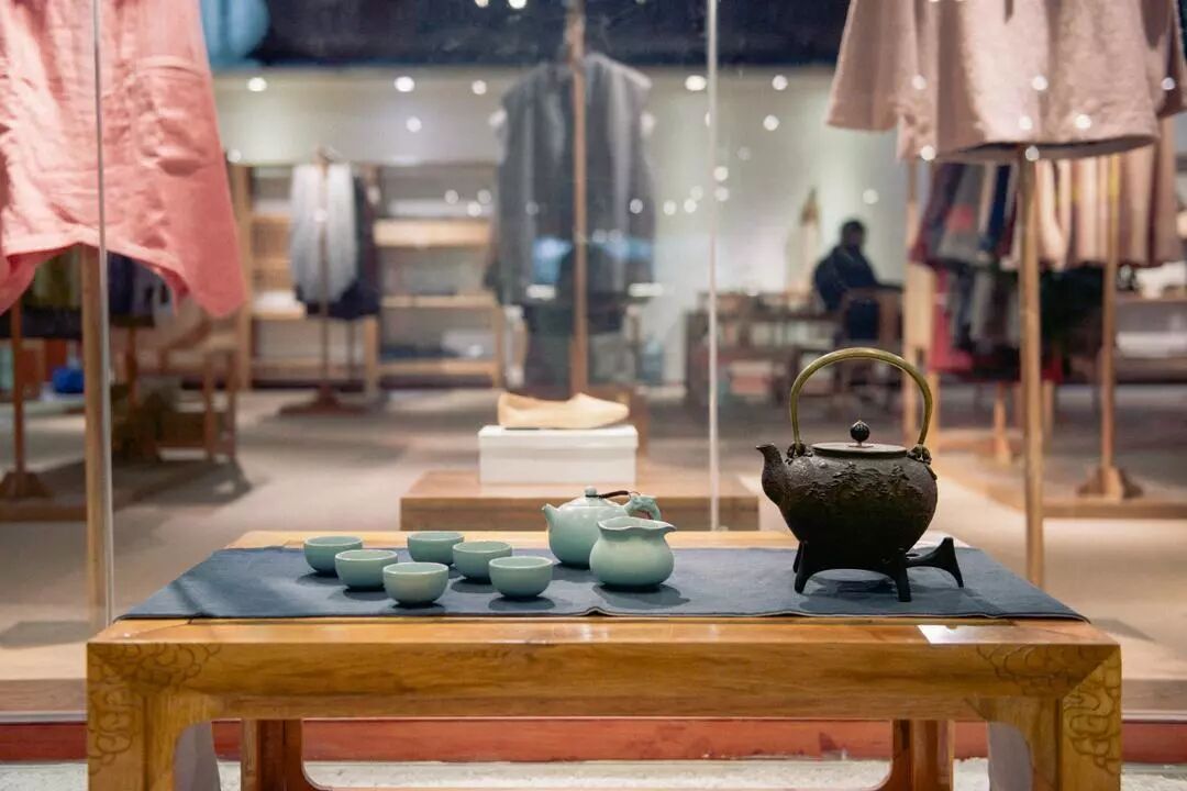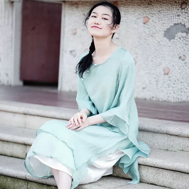 这些变化与近久的茶文化兴起有关,多取自茶固有的“和、静、清、悠”特点,材料更是远离以往的丝绸锦缎,以棉麻、粗布制作,吸收汉服的宽适庄重之美与唐装的流长悠扬特点,并融合清透色彩,淡雅之致。