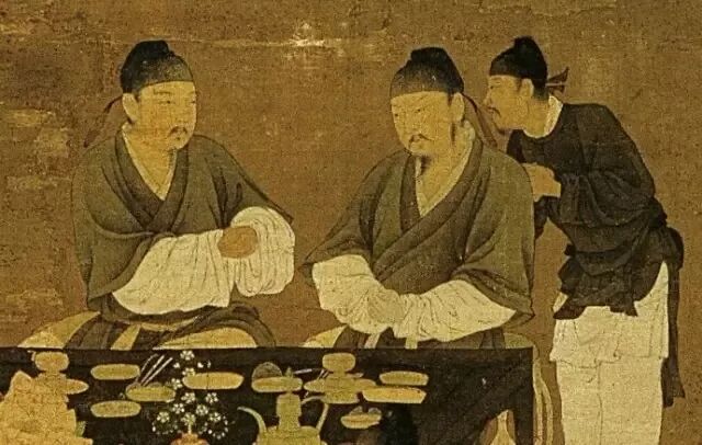 宋徽宗的《文会图》,描绘了北宋时期文人雅士品茗雅集的一个场景
