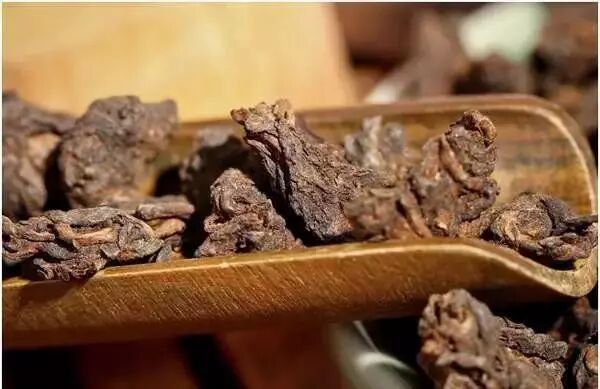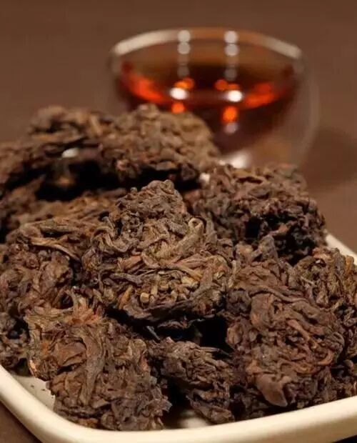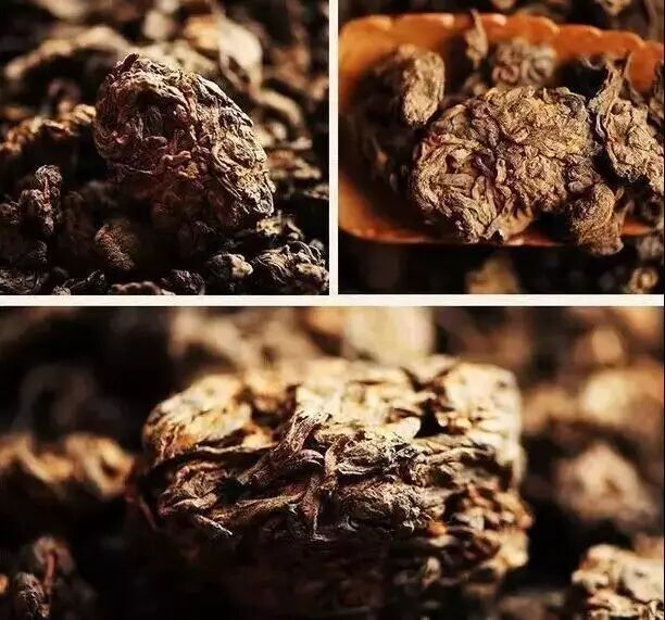 由于是自然结块,没有经过人工的修饰,它的品相并不好看,就像是一小块一小块的深褐色的面疙瘩,所以又被称为“疙瘩茶”。