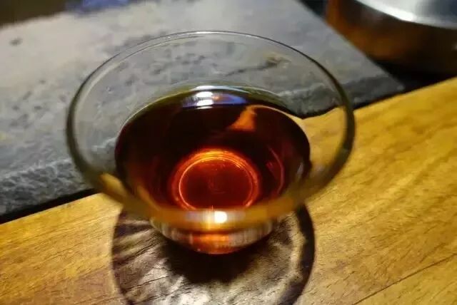 茶汤随着茶头存放时间的增加也会越来越透亮。想想此刻一边嚼着茶汤,一边观看如红宝石透亮的汤色,当真是一种享受啊!