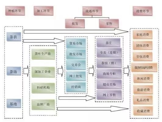 茶叶企业由传统产业向现代产业转型,通过兼并,收购,参股,控股等方式,向上控制茶叶生产基地、种植园,横向整合其他中小型茶企,向下布局营销渠道和零售网点,实现产业链的贯通。