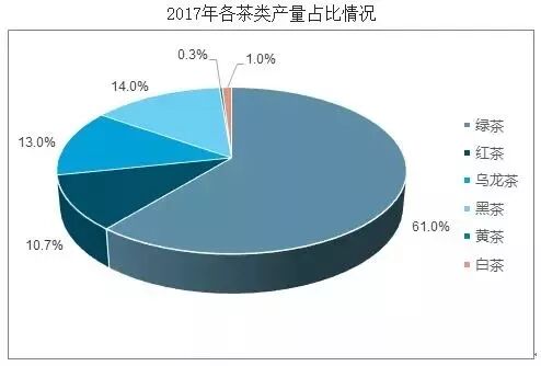 目前,茶叶市场中绿茶、乌龙茶占据主要份额,尤其是绿茶,占市场份额50%以上,但近年的产量比重在逐渐下降。