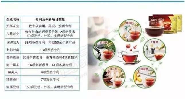 茶叶企业加强了对创新关注度,到2016年初,涉茶专利数量已近1万6千个。这些专利的申请单位多数为茶叶企业,专利涵盖产品成产流程、配方、包装、消费等多个领域,全方位推动产品创新与多元化发展。