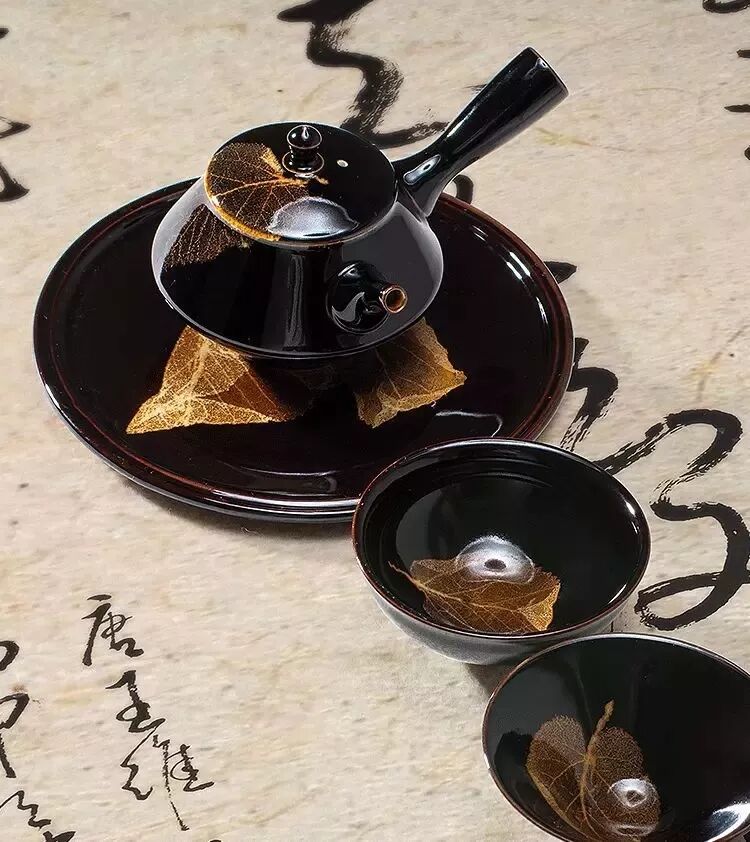 一片柔嫩的树叶,如何在经过1200多度高温之后,不仅没有灰飞烟灭,反而将其美丽的纹路、形体、脉络永恒而完整无缺地保留在了漆黑的茶盏上?
