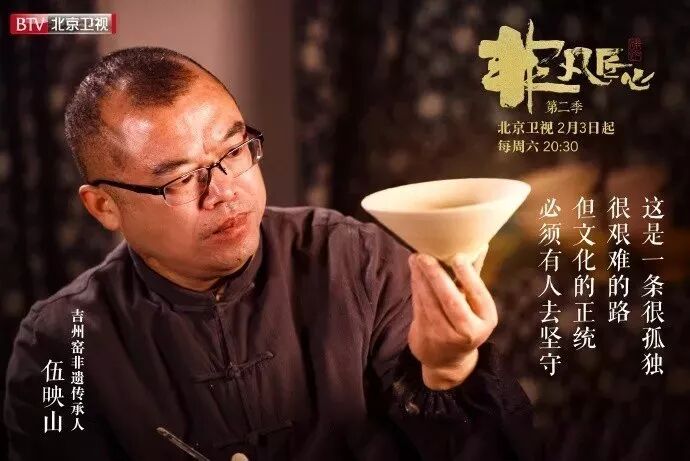 今年年初的时候,北京卫视播出了一档节目,叫做《非凡匠心》,便提到了木叶天盏的技艺和传承。节目中,“匠心传播大使”张国立和演员高晓菲一同拜访吉州窑陶瓷技艺传承人伍映山,一步步体验制作其过程,还去到了白鹭洲中学采桑叶。