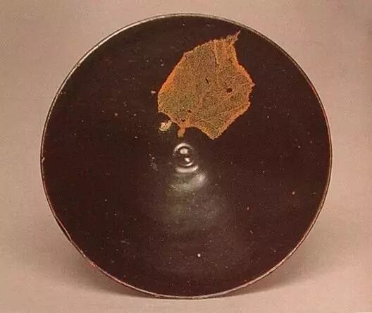 在吉州窑中,以木叶天目最富神秘。在盏内壁,有一片被凝固的天然树叶,闪亮着金黄的光泽。古拙的黑陶,有禅意的树叶,既有古朴之风雅,又有禅理之哲思,拙中藏细。