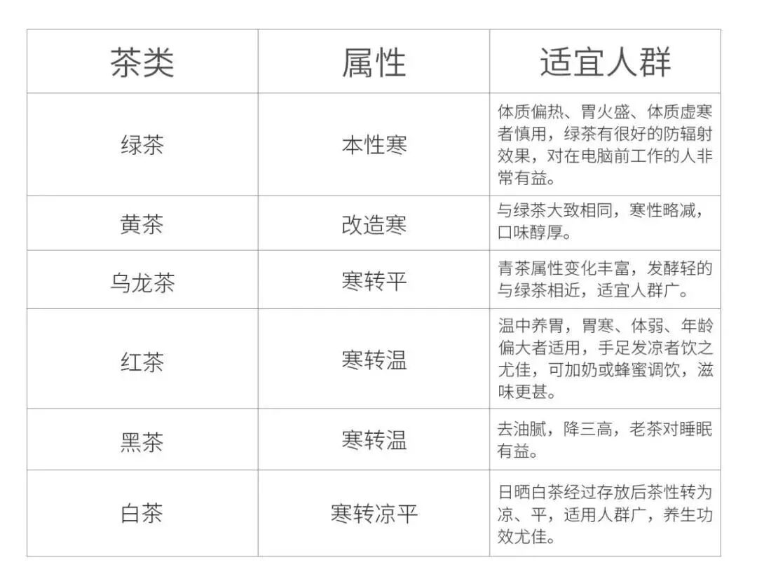 中国有六大茶类,每种茶类的滋味都不尽相同,除了考虑对象,也可以从茶性本身来选择。红茶、白茶、熟普的送礼范围最广,送谁都很好,怎么送都不会出错。