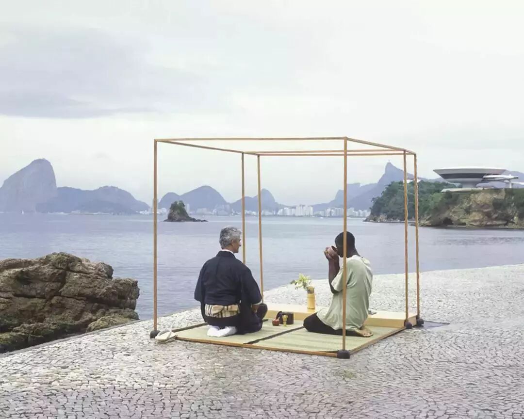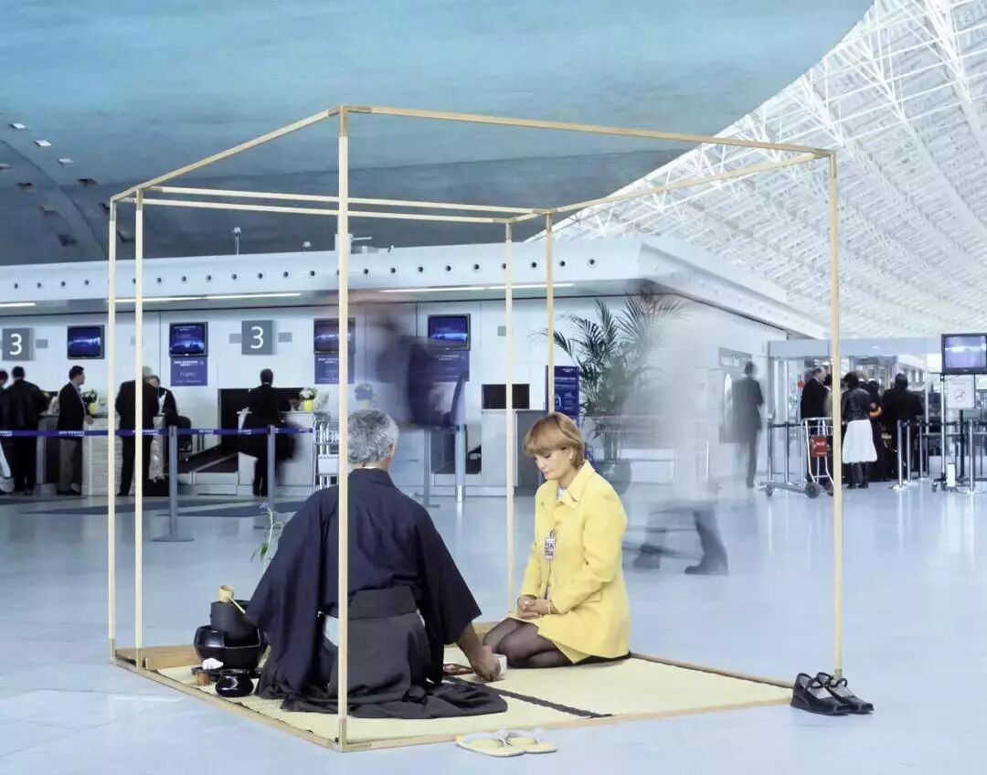 为了让不同语言、不同文化的人们都可以感受到茶道的魅力。塞内尔将自己的茶室带往世界各个角落。无论是中国的长城,法国的戴高乐机场,还是日本的百货商场,巴西的巴拉海滩 ......都曾留有过艺术家宁静、祥和的背影。
