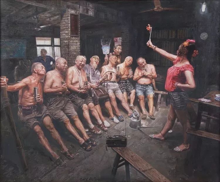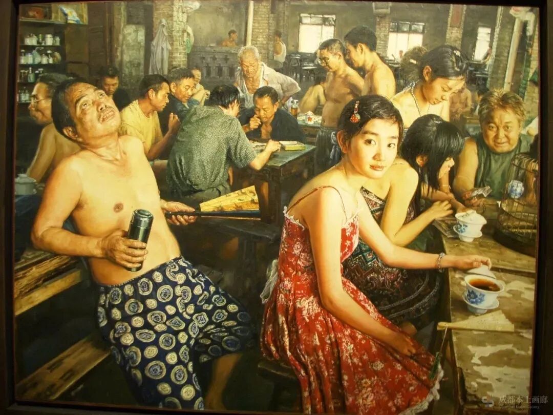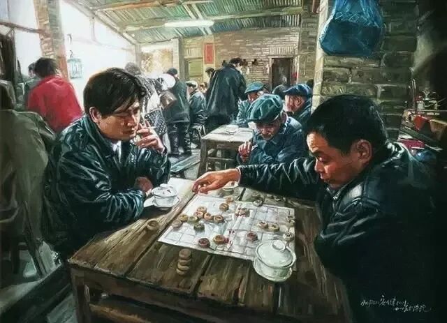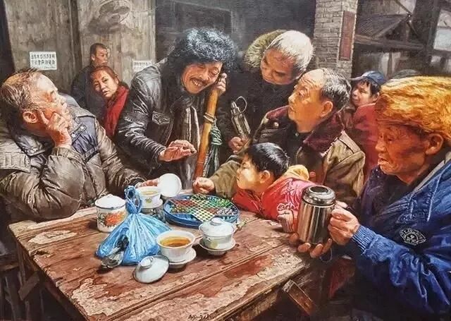 陈安健说:“茶馆里热气腾腾的样子,乐不思蜀的感觉,茶客们吹牛的表情,都很入画,是对人内心世界的一种表现。”