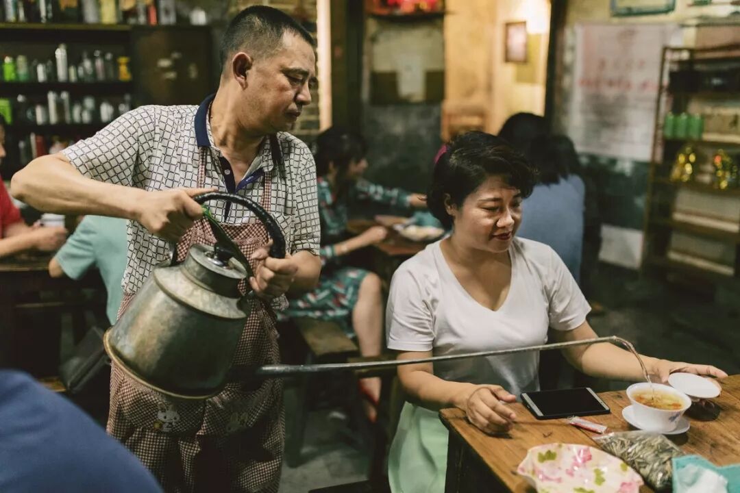 茶客们好的,就是这一口“镇”过的水,有古旧的味道。“喝两江水的人,就像一把钥匙开一把锁,就等于说定了,就离不开了。”一位茶客分享道。这喝的已经不是茶,是感情。