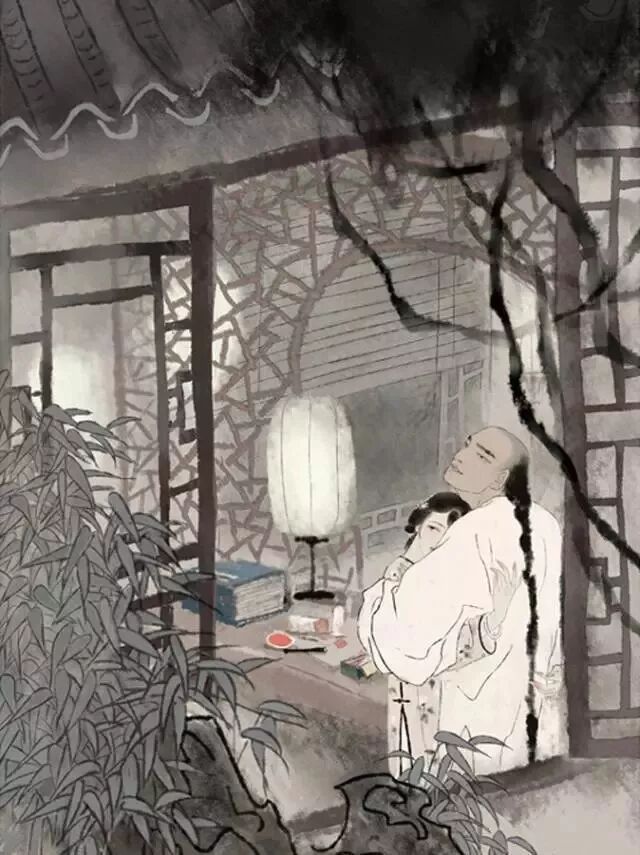 七月望,俗谓鬼节,两人在月下举杯共酌,吟诗作赋,说到极其好玩的事情,芸娘漱涎涕泪,笑倒在沈复怀中,连话都说不出来了。