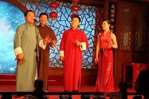 北京的老舍茶馆,大红的灯笼挂成串,舞台上锣鼓震天响,京剧唱罢相声接台,直来直往。