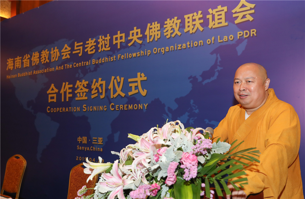 4月29日下午,老挝建国阵线和老挝中央佛教联谊会代表团与海南省佛教协会签署了《一带一路中老佛教教育合作谅解备忘录》,签字仪式在三亚南山寺举行。