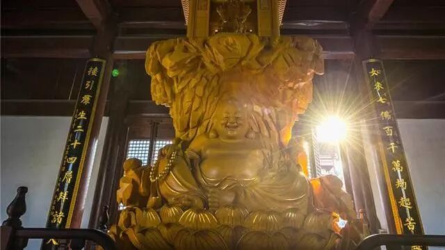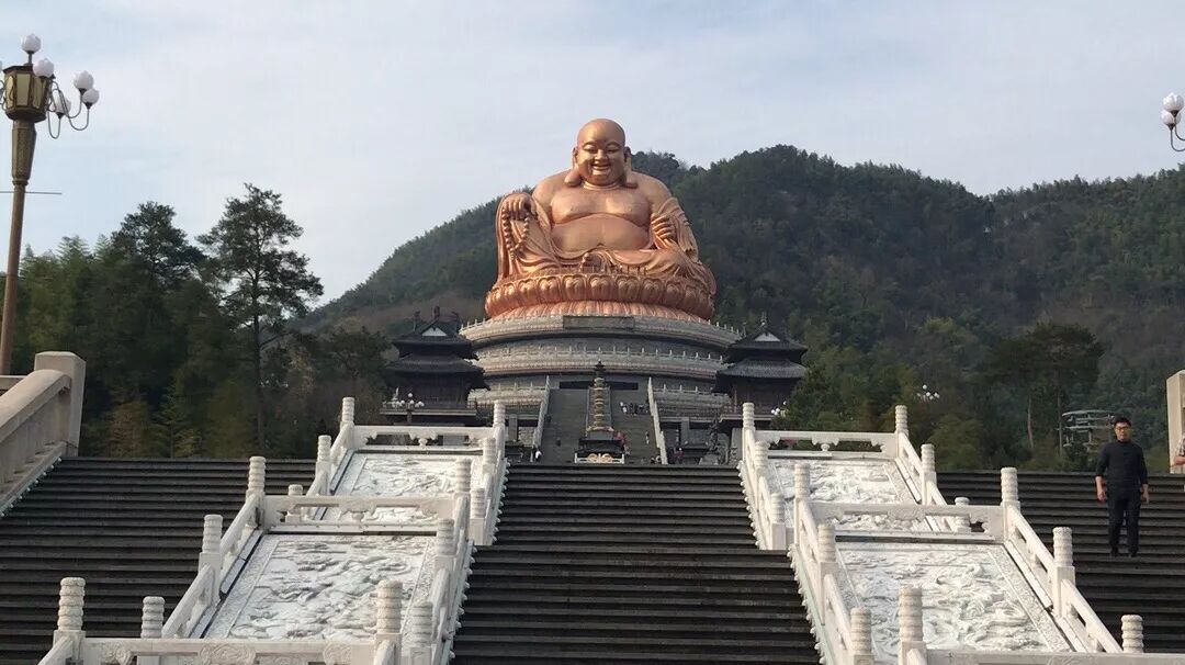 而除了典故所赋予的“圣光”,雪窦山的弥勒大佛也是其成为中国五大佛教名山的重要因素。露天弥勒大佛造像总高度为56.74米,以奉化后梁高僧、弥勒化身布袋和尚为原型,宏伟壮观,气势非凡,是迄今全球最高的坐姿铜制弥勒大佛造像。它提升了雪窦寺弥勒信仰中心的地位,为把雪窦寺建成中国五大佛教名山、弥勒道场铺下了一块重要的基石。