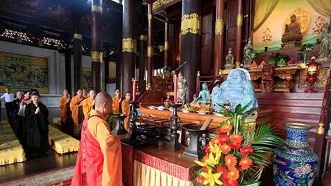 岳林寺之所以闻名寰宇,大因弥勒道场。上文说到,岳林寺是布袋和尚出家的地方,契此在此跨入佛门,剃去青丝,披上袈裟,成为“释契此”。布袋和尚云游四方,化缘得来的善款用于修缮岳林寺,后圆寂于此。