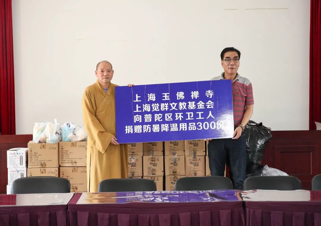 炎炎三伏送清凉,上海玉佛禅寺联合觉群文教基金会慰问交警和环卫工人