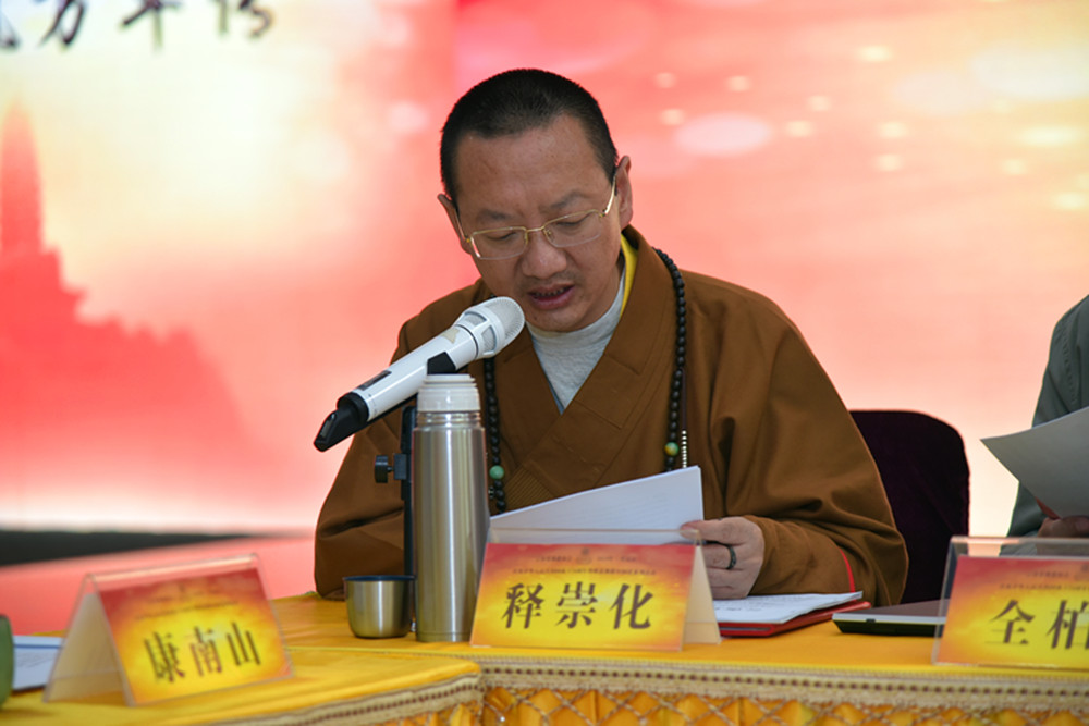 崇化法师代表云南佛教界在开幕致辞中表示,佛教在传入云南后,成功融入云南文化中,成为了具有云南特色的佛教文化。历史和现实一再证明,只有坚持中国化方向的宗教才能更好的与社会主义社会相适应,在我国经济社会发展中发挥积极作用。他指出在推动云南省佛教中国化过程中,佛教人士要带头深入挖掘教义教规中有利于社会和谐,时代进步,健康文明的内容,努力构建具有中国特色的宗教思想体系;要在爱国主义的旗帜下,引领信众热爱祖国,拥护社会主义制度,拥护中国共产党的领导。自觉主动顺应社会,服务社会,担当社会责任;要培养习近平总书记希望的“能建立与中华民族血脉相连、与祖国荣辱与共、与人民相濡以沫的深刻感情”的僧才。