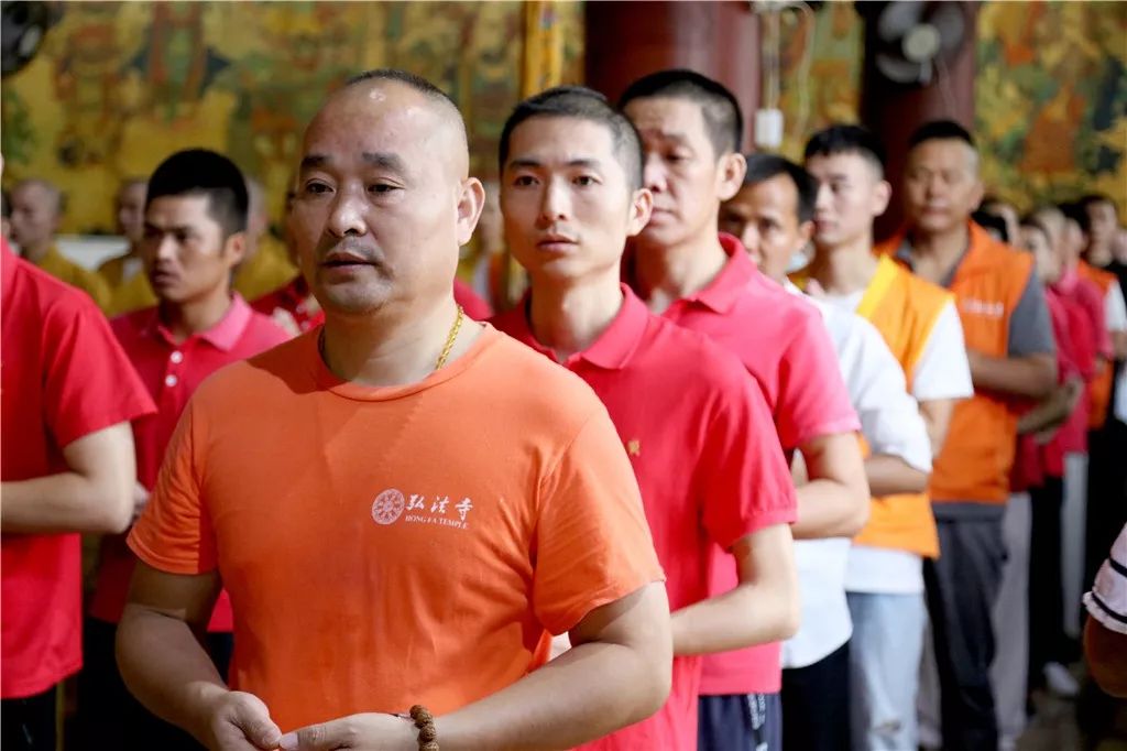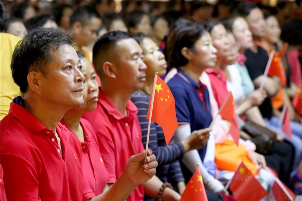 上午6时30分,深圳弘法寺四众弟子齐聚大雄宝殿前。在激昂的国歌声中,五星红旗缓缓升起,大众肃立,齐唱国歌,并行注目礼,表达对伟大祖国最真诚的感谢和最衷心的祝福。