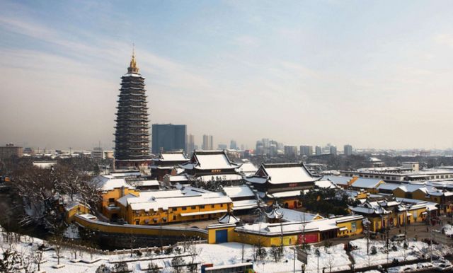 天宁宝塔的建筑与装饰风格承袭了唐宋时期的风格,古朴大气,庄严无比。从2002年奠基开始,历时五年,到2007年宝塔方告修建完毕。