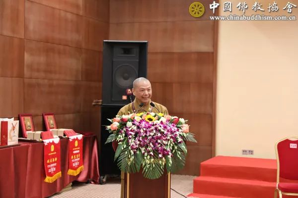 演觉副会长代表中国佛教协会在欢迎晚宴上致辞。他指出,佛教文化是两岸文化交流的重要组成部分,也是两岸民心相通的重要精神纽带。自改革开放以来,两岸佛教友好往来日益频繁,呈现出深度交流、全面合作的发展趋势。台湾“中华人间佛教联合总会”成立以来,积极推动两岸佛教界在文化交流、佛教教育、佛学研究等方面携手合作、互学互鉴,取得了丰硕成果,进一步巩固和发展了两岸佛教界的深厚友情和传统法谊,为促进两岸民心相通、推动祖国和平统一,发挥了佛教界的独特作用。佛教教育是佛教事业健康发展的头等大事,关乎佛教的前途和命运。此次“两岸佛教教育交流座谈会”,两岸佛教界都派出了阵容强大的参会团队,交流主题具有重要的时代创新和现实意义。希望海峡两岸的法门兄弟,携手并肩、同愿同行,为推进祖国和平统一、实现中华民族伟大复兴的中国梦,作出新的更大贡献。