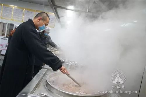 少林寺斋堂自凌晨两点开始熬制腊八粥
