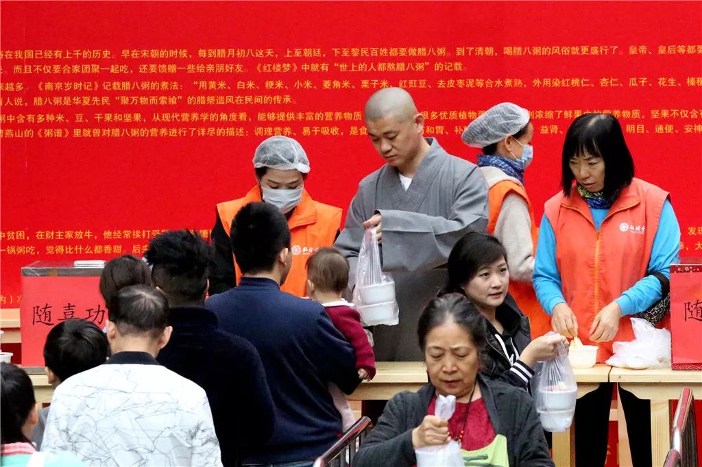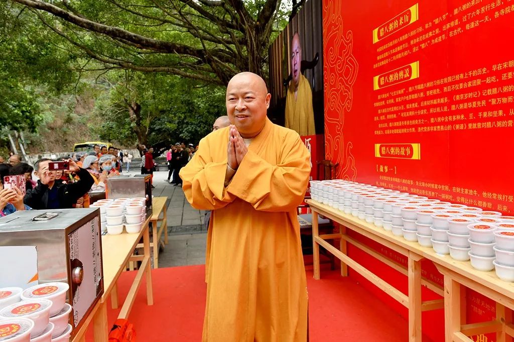 在这个喜庆的日子里,印顺大和尚也亲临施粥现场,向大家致以节日的问候。印顺大和尚表示,过了腊八就是年,腊八是把我们每一年对春节的期待、春天的期望与来年的祝福都慢慢的凝聚在一起,让我们每个人细品这碗腊八佛粥,回味过去一年,祝福未来一年。腊八粥寄托着大家对一切美好的祝福,对大家一切美好的祝愿,我希望大家喝了今天的腊八粥以后,都可以身心如意,开心自在,欢欢喜喜,开开心心的迎接新的一年,也让腊八粥温暖自己的身心,温暖自己的未来,使身心在腊八粥的祝福下都能自在欢喜、无忧无虑的每一天。