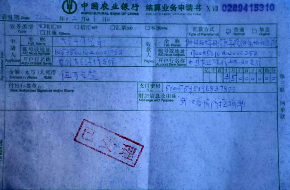 2月1日,同觉寺直接向华中科技大学同济医院附属协和医院(武汉协和医院)捐助5万元。