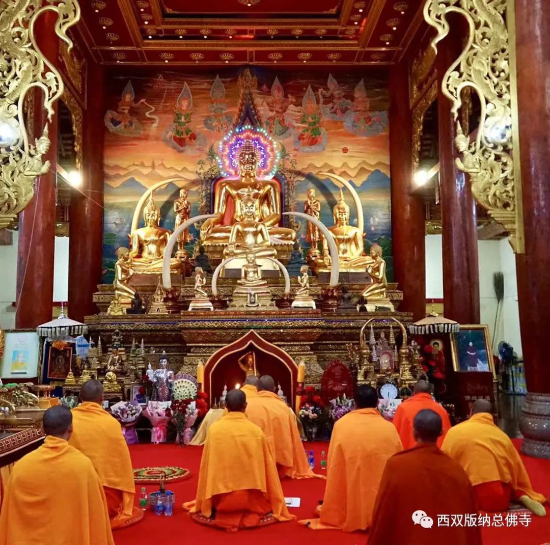 中国佛教协会副会长帕松列龙庄勐大长老带领全体法师礼敬佛法僧三宝