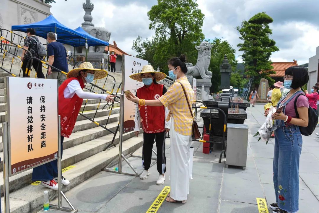 经过长时间的充足准备和数次开放演练,2020年6月26日上午,珠海普陀寺有序恢复开放,迎来首批参访善信。十方善信网上预约,现场扫码、测温、礼佛流程顺畅,现场大众纷纷表示,寺院井然有序的秩序和体贴周到的服务,都让人赞叹不已。