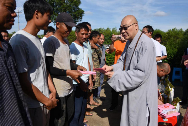 在结束了江华县的救灾帮困捐赠活动后,圣辉大和尚一行不顾天气闷热,翻山越岭赶往江永县,对该县源口瑶族乡和兰溪瑶族乡的200多户受灾比较严重的少数民族困难户开展第三站扶危助困活动。