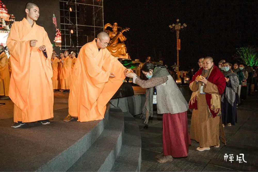 现场在庄严祥和的禅音下,广大信众积聚福德、点亮心灯,星星点点照亮了黑暗,皆包含了人们祈求风调雨顺、家庭美满、天下太平的美好愿望。
