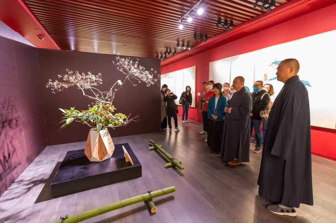 2020年11月13日上午10时,由上海玉佛禅寺联合日本池坊华道举办的“空华水月·玉佛印心”玉佛禅寺·华道家元池坊作品展正式开幕。