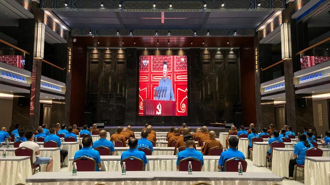 7月1日上午8时,庆祝中国共产党成立100周年大会在北京天安门广场隆重举行。湖北省佛教界通过各种方式收看现场直播,认真聆听习近平总书记重要讲话,共同庆祝中国共产党百年华诞。