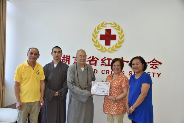 7月28日,是大慈大悲观音菩萨的成道日,上午9点、湖南省佛慈基金会理事长圣辉长老率基金会工作人员,来到湖南省红十字会,将募集的30万元慈善款捐赠出来,驰援河南开展防汛救灾工作,并祈愿河南人民早日度过水灾难关,恢复美好幸福的家园。(图文:湖南佛教网)