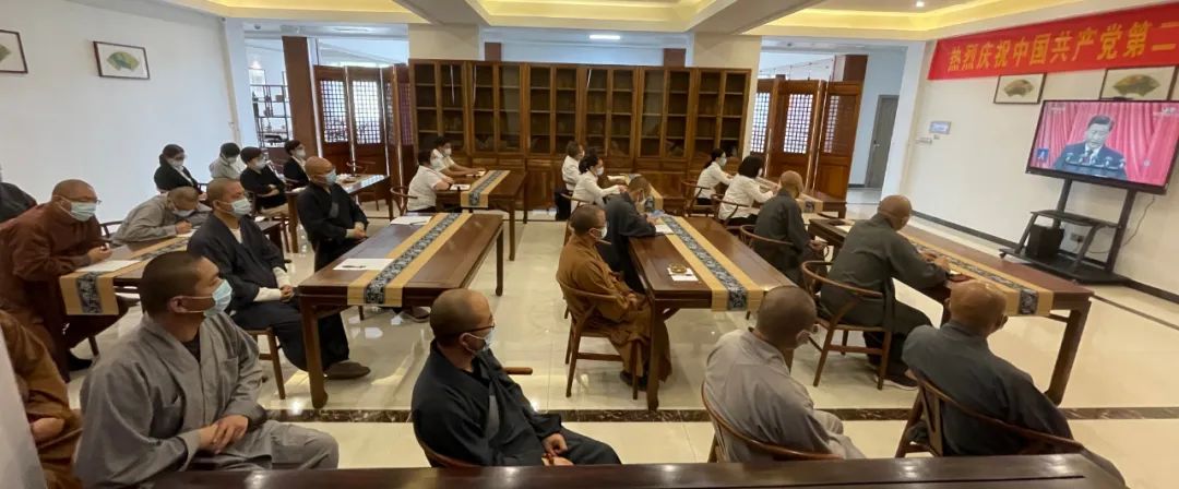 浙江宁波市雪窦山资圣禅寺组织收看党的二十大开幕会